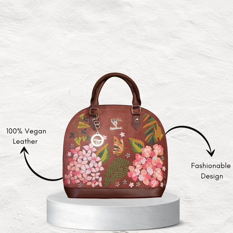 The Blossom Wood Handbag in warm brown with floral embroidery is crafted for women who appreciate nature’s charm in their accessories. Compact yet refined, it’s a versatile bag that adds earthy sophistication to both daily use and festive occasions.