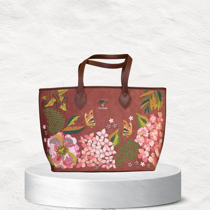 Featuring a beautifully detailed Nature inspired embroidery design, this tote bag is perfect for women who love to make a statement while staying eco-conscious. Its spacious interior offers enough room for your laptop, essentials, makeup pouch, and more, making it an ideal choice for work, travel, or casual outings.