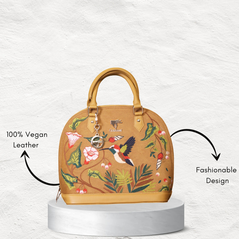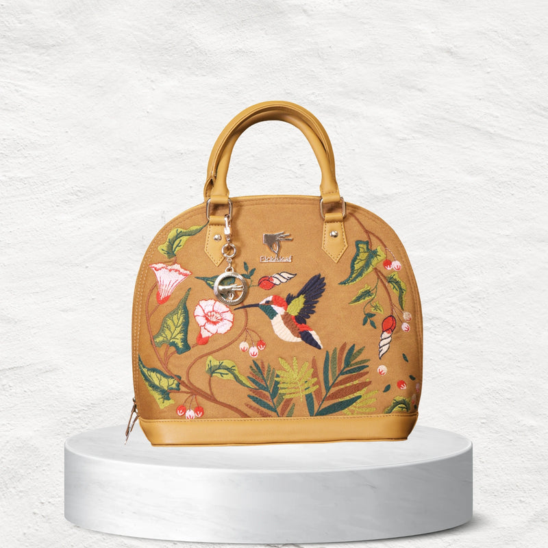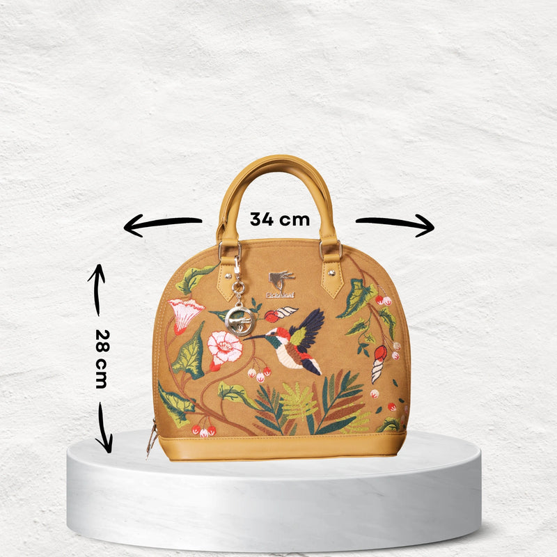 The Floral Handbag in radiant gold, adorned with intricate embroidery, is crafted for women who love to make a lasting impression. With its refined design and compact practicality, this handbag is the perfect companion for celebratory evenings, elegant outings, and graceful daily styling.