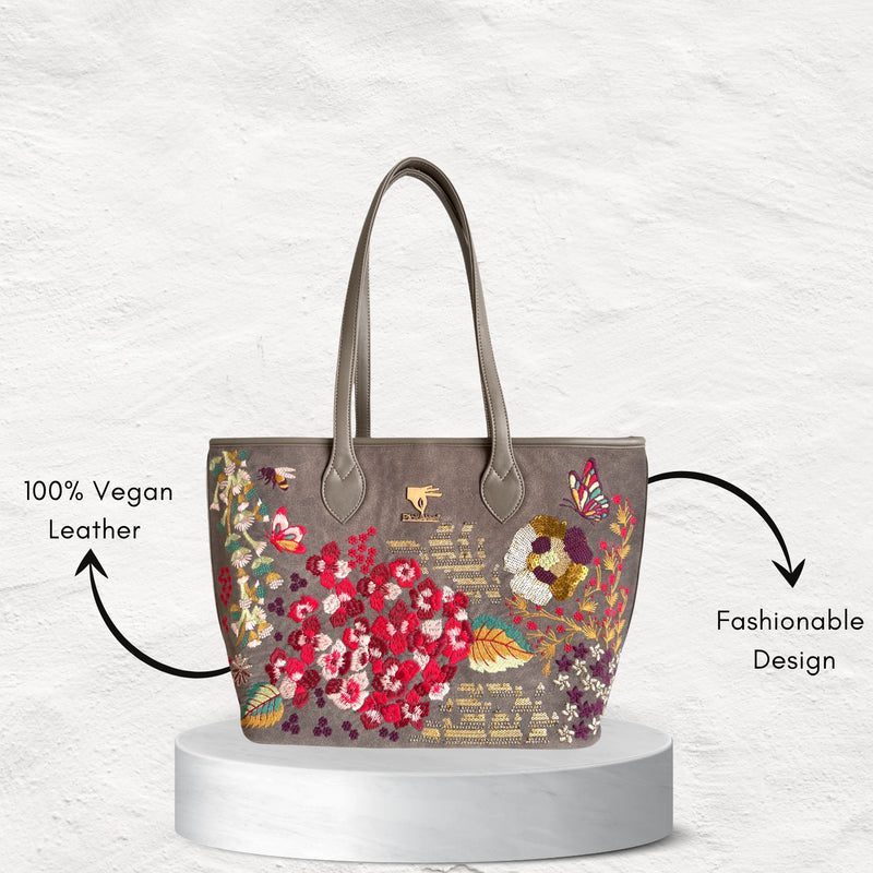 Featuring a beautifully detailed Nature inspired embroidery design, this tote bag is perfect for women who love to make a statement while staying eco-conscious. Its spacious interior offers enough room for your laptop, essentials, makeup pouch, and more, making it an ideal choice for work, travel, or casual outings.