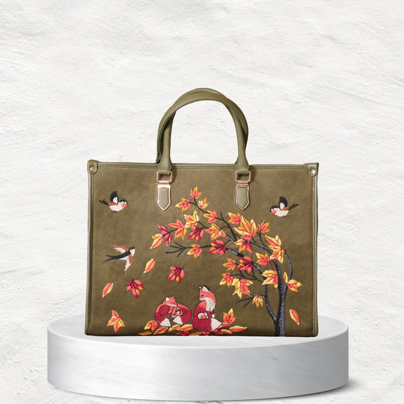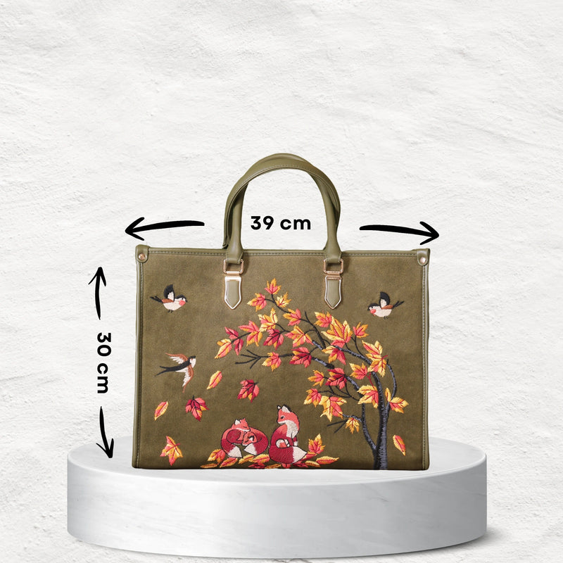 Bring home the perfect blend of style, comfort, and functionality. The Autumn Whisper Shoulder Bag in rich olive green with elegant hand embroidery is designed to elevate your everyday look — from casual coffee runs to festive evenings.