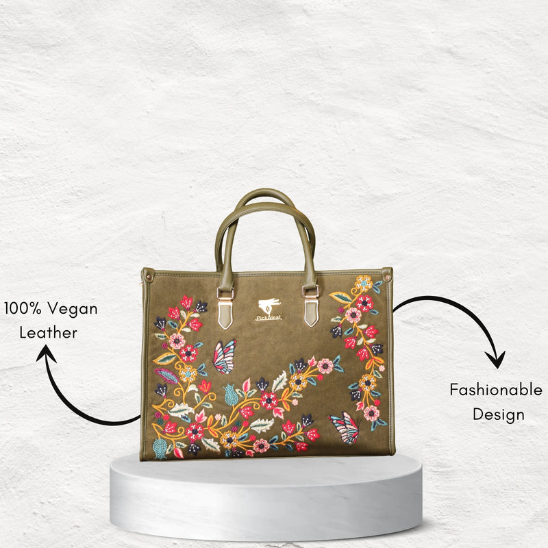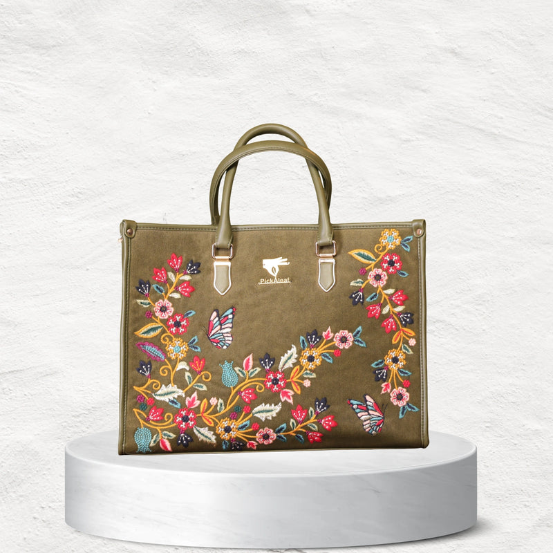 The Waves Shoulder Bag in classic olive green with flowing embroidery patterns is designed to add calm elegance to your daily look. With its earthy tones and wave-inspired detailing, it’s a versatile piece that blends nature’s charm with everyday utility.