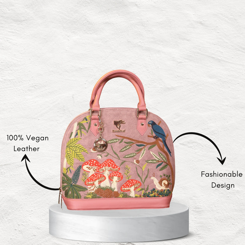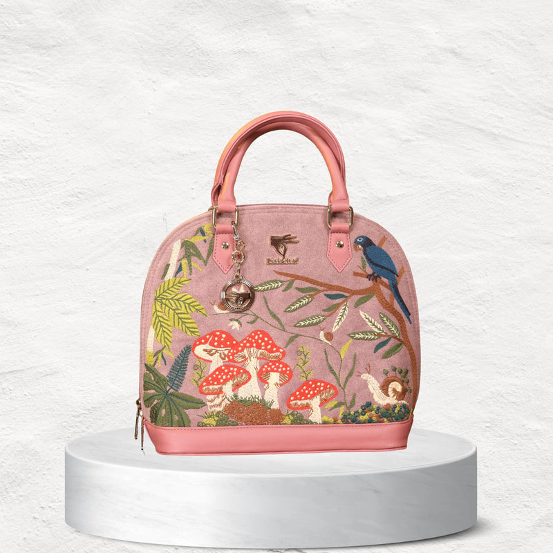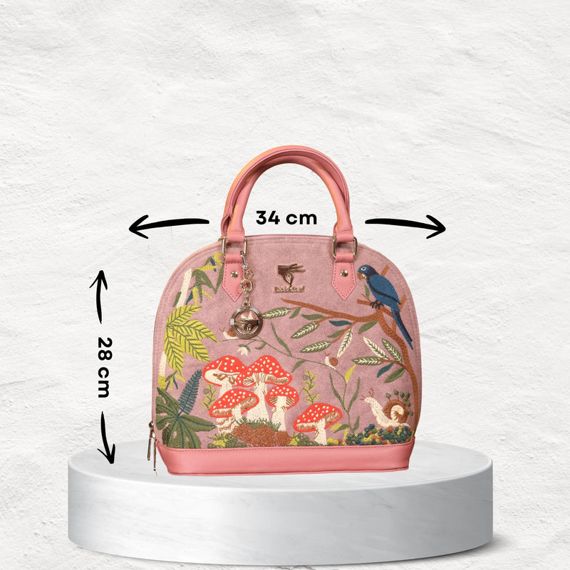 The Paradise Handbag in a graceful pink shade with delicate embroidery is designed for women who adore soft elegance with a hint of charm. Compact yet roomy, it’s the perfect accessory to brighten daily outfits and complement festive looks with effortless style.