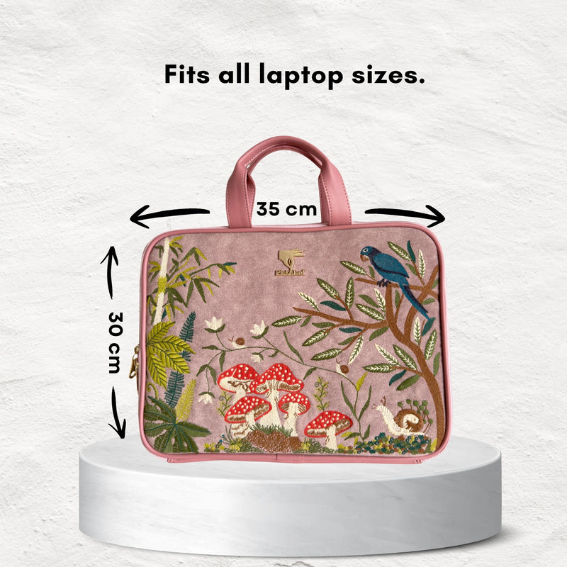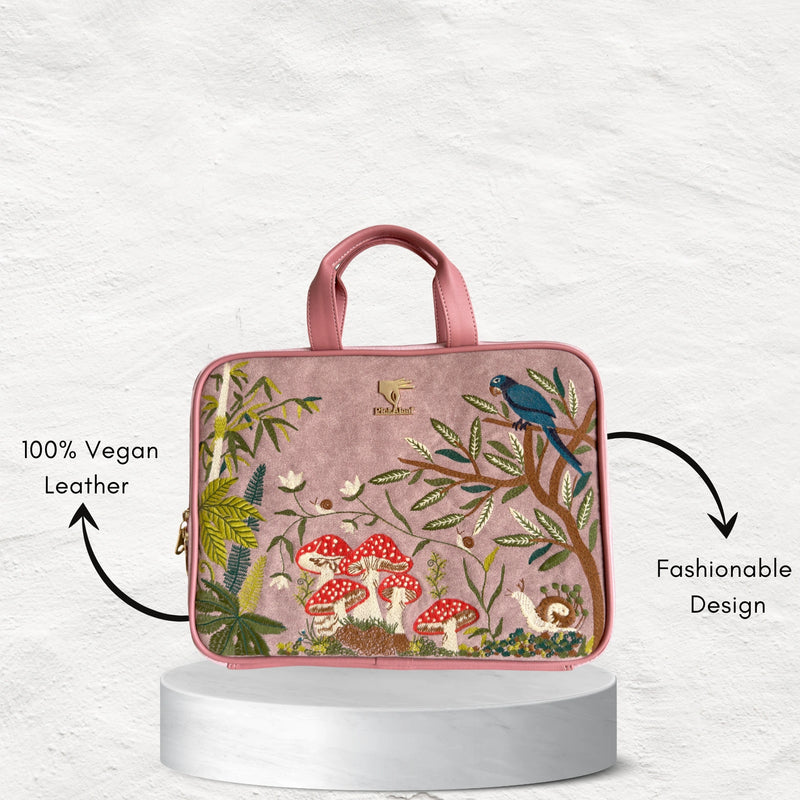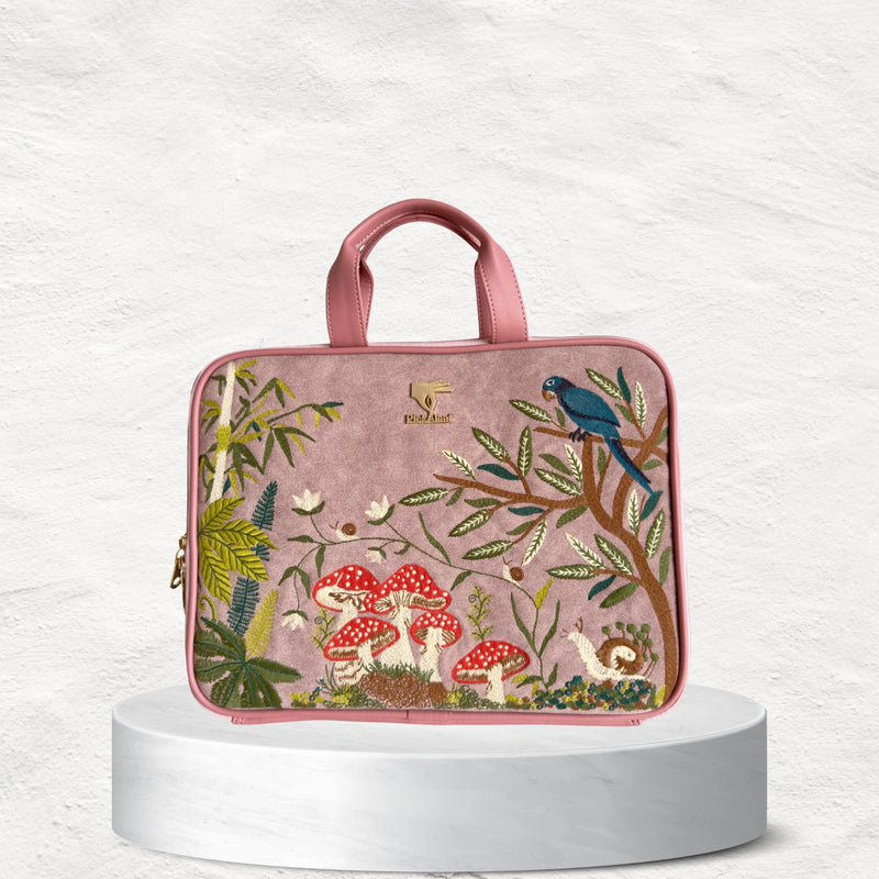 The Pink Paradise Laptop Sleeve blends functionality with feminine charm. Featuring soft pink tones and delicate embroidery, it not only keeps your laptop safe but also adds a refined, elegant edge to your work or study routine.