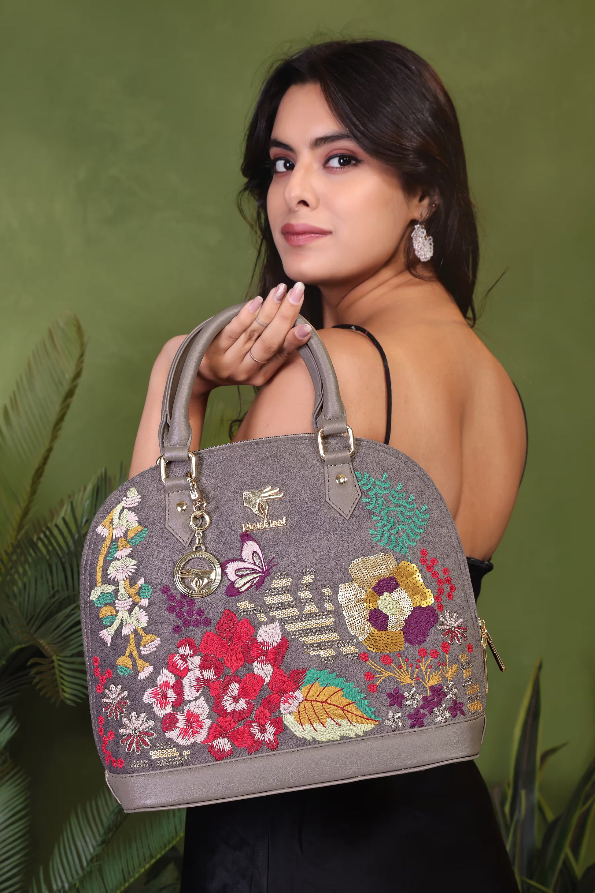 The Garden Grey Hand Bag in a refined gray shade with delicate embroidery is perfect for women who love understated elegance. Its versatile design makes it equally fitting for workdays, casual outings, or special occasions, offering both style and practicality in one carry.