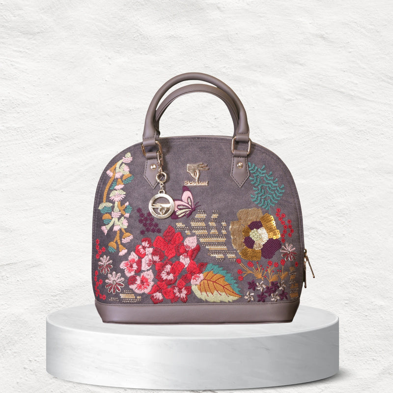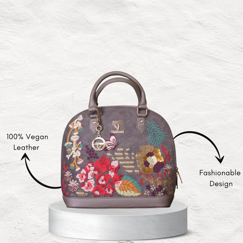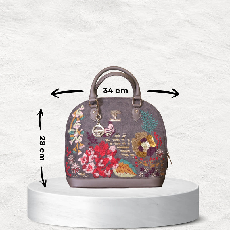 The Garden Grey Top Handle Bag in a refined gray shade with delicate embroidery is perfect for women who love understated elegance. Its versatile design makes it equally fitting for workdays, casual outings, or special occasions, offering both style and practicality in one carry.