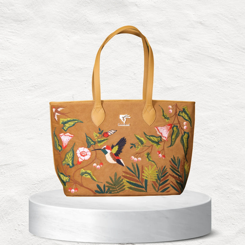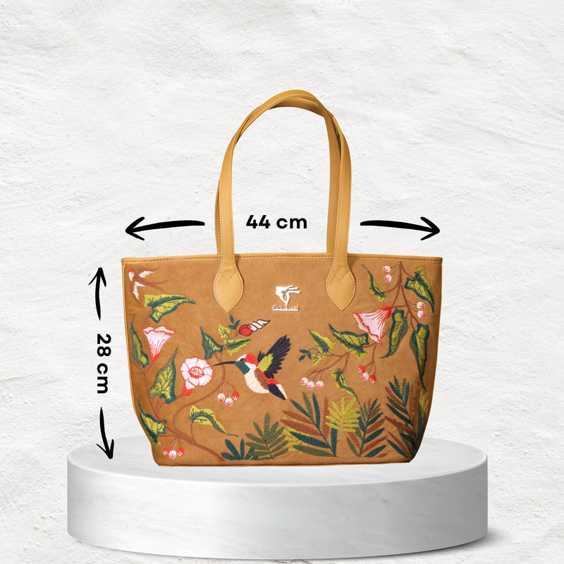Featuring a beautifully detailed nature-inspired embroidery, this tote is ideal for women who love to make a statement while staying eco-conscious. The spacious interior, complete with inner pockets, fits your laptop, makeup, and daily essentials, making it perfect for work, travel, or casual outings.