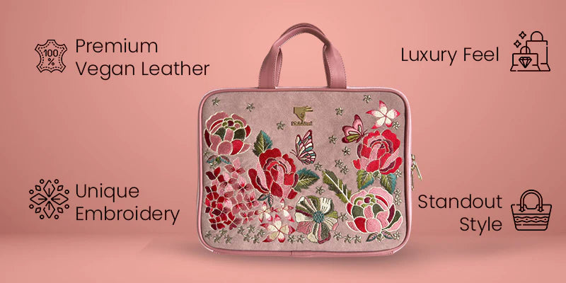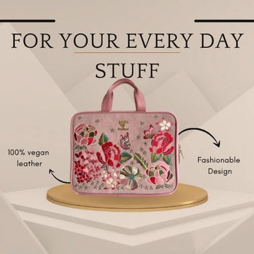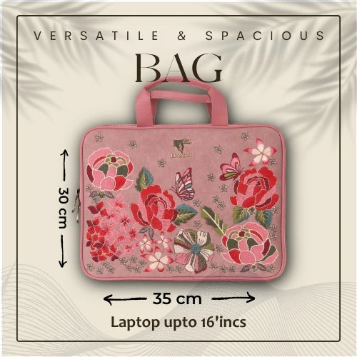 The Violet Valley Laptop Sleeve in a rich purple shade with intricate embroidery is crafted for those who believe their tech accessories should be as stylish as their wardrobe. Designed to keep your laptop secure while reflecting artistic charm, it’s a perfect choice for both work and travel.